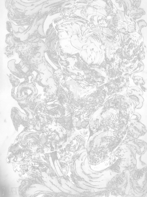 Painting of Jesus legs standing in the ocean. There is a flash of light, or an explosion. Oil on paper. © Milo Dlouhy
